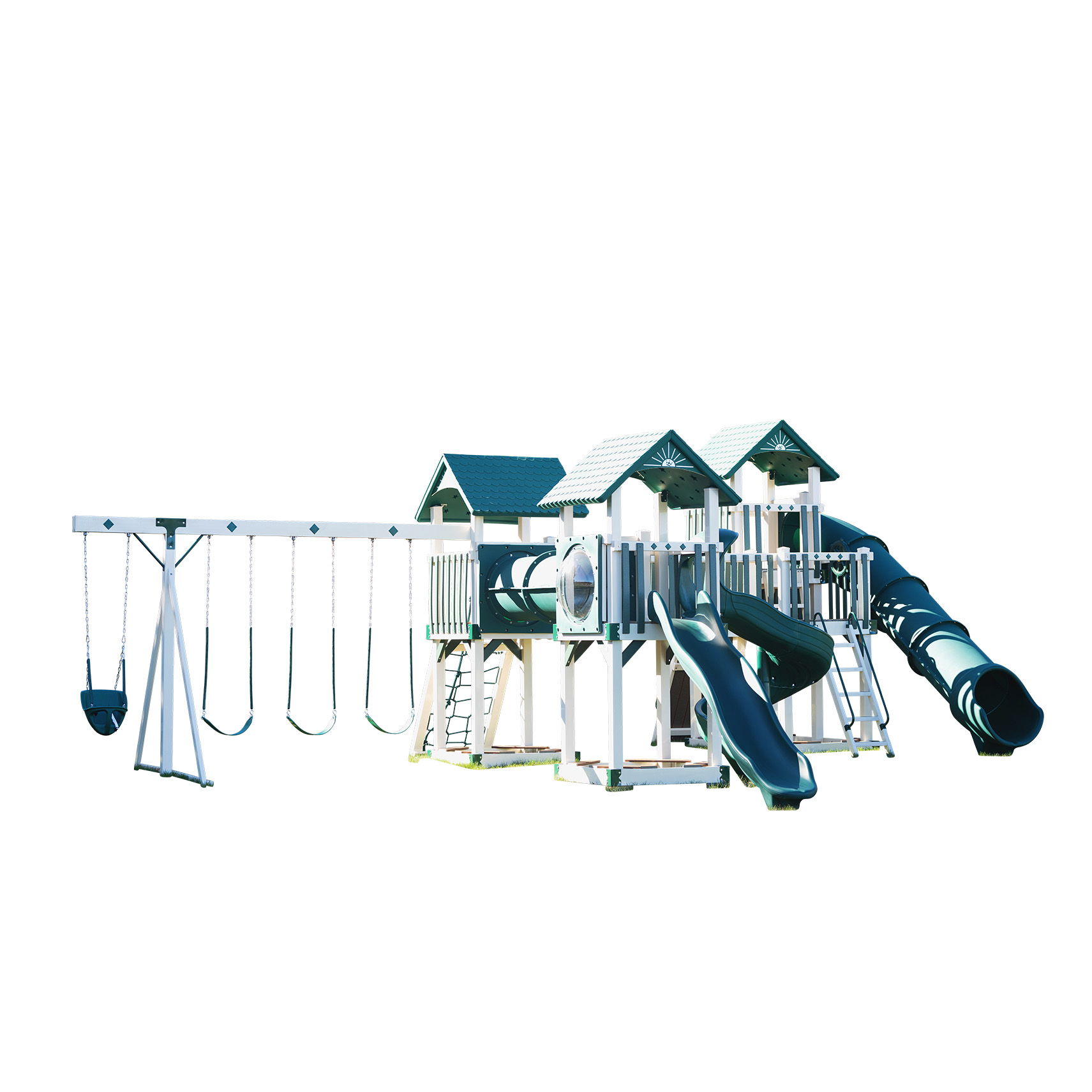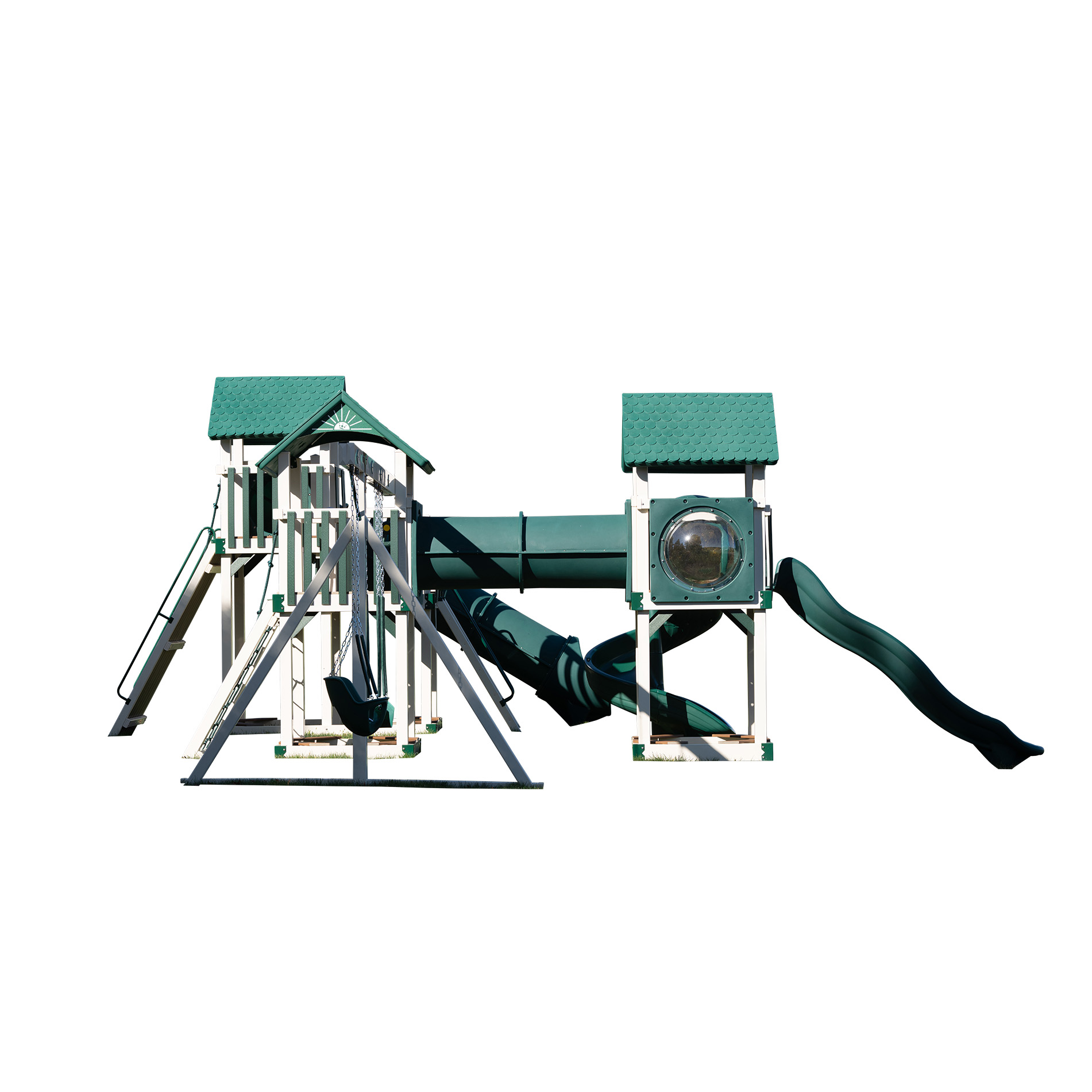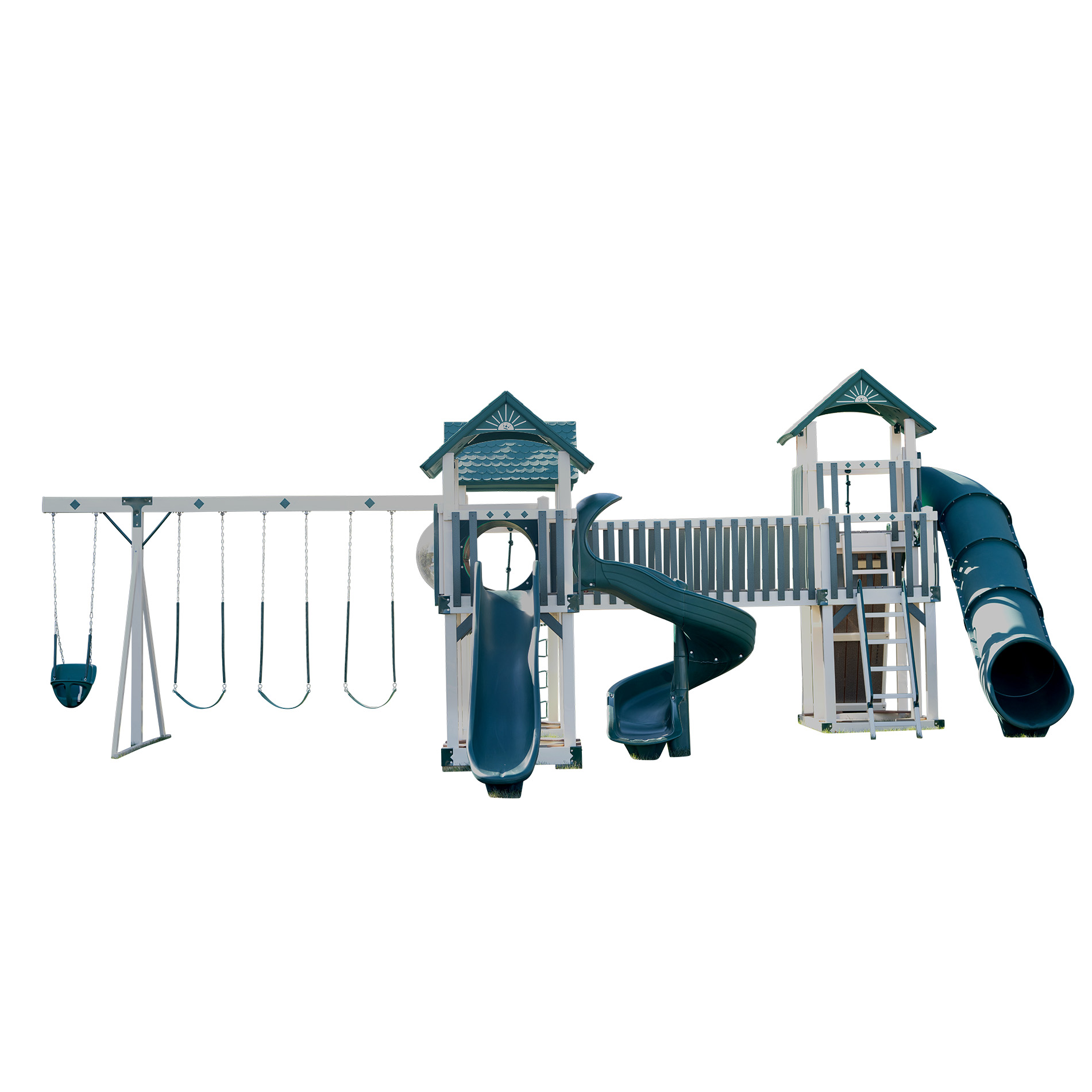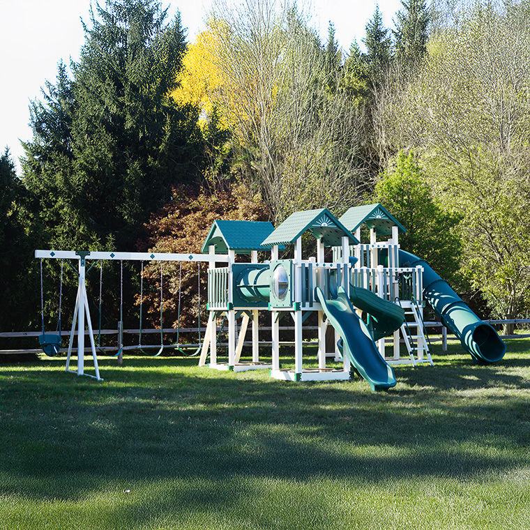 Towers: (2) 4’x4′ Play Deck w/5′ Deck Height, 4’x8′ Double Deck w/5′ & 7′ Deck Heights