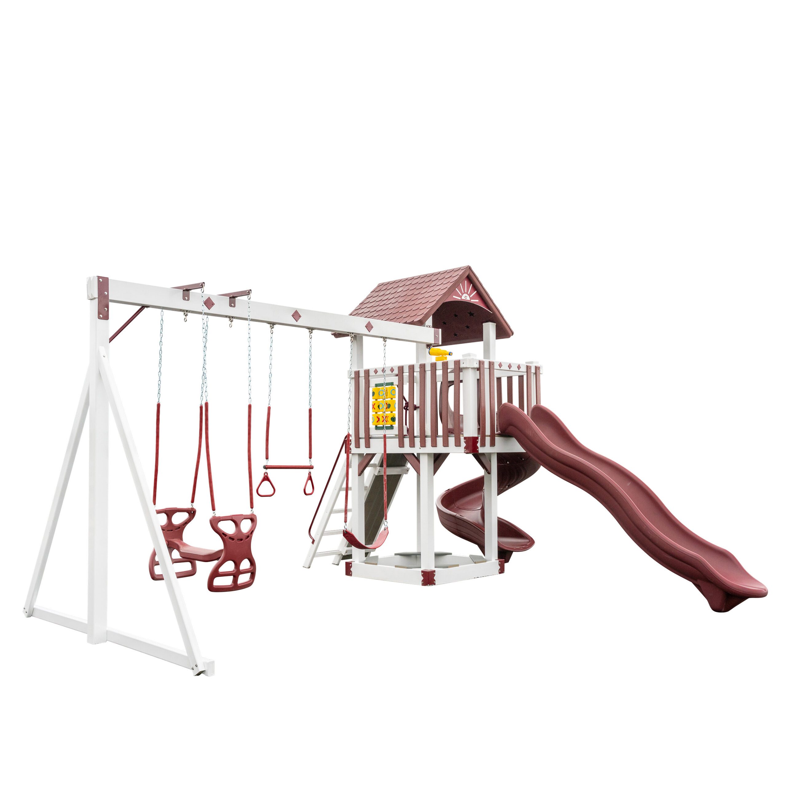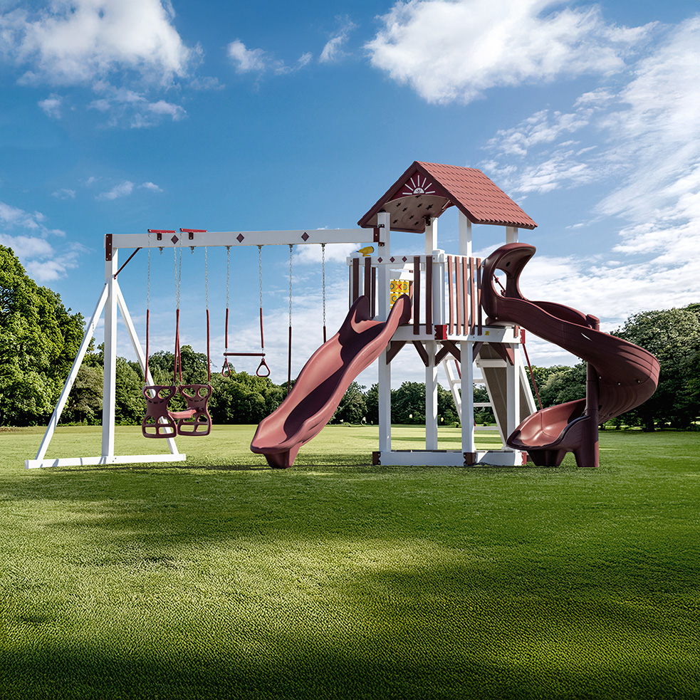 The Trekker Commercial Playground Equipment is the cost-effective play solution that works well for any small business, church, HOA, or other public entity that doesn’t need to meet ASTM standards but wants a durable and beautiful playground for their children.