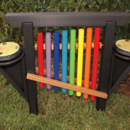 Made from up to 95% post-consumer recycled plastic lumber, our musical chime w/ drumsplayground accessory is waterproof and weather-resistant. Whether tapping out a rhythm by hand, stick, or their left shoe, your children will find this kit adds a lot of fun to a playground!