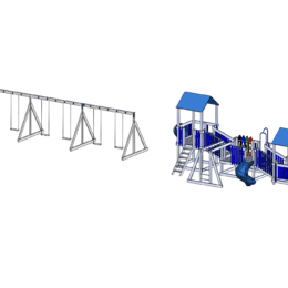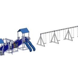 This package includes our Navigator playground, four belt swings, and two toddler swings. The package includes our weed guard, rubber mulch, and play zone border.