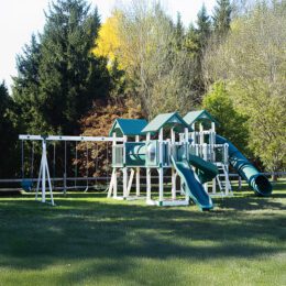 At 5′ tall, the Pathfinder Play Equipment is perfect for a wide range of ages and locations. Churches, HOAs, and other public entities will enjoy the diverse options this playground offers, from swings to slides to climbers. Everyone from the little ones to the pre-teens will find something fun to do on the Pathfinder Playground.