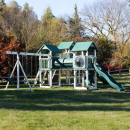 Towers: (2) 4’x4′ Play Deck w/5′ Deck Height, 4’x8′ Double Deck w/5′ & 7′ Deck Heights