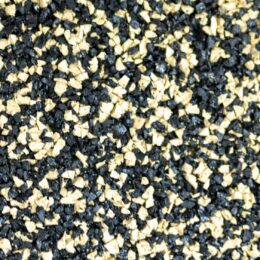 It consists of a unitary bonded EPDM top layer that is poured in place. Under this surface is a layer of rubber mulch to absorb shock. Used in combination, this surfacing is beautiful, tough, and safe.