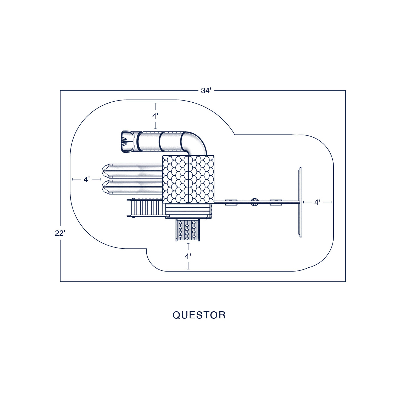 Customizable, the Questor Play Structure pairs well with schools, small businesses, or any other public entity that wants to add fun to its location without meeting ASTM standards.