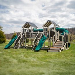 With a 5′ deck height and a 7′ deck height, the Ranger Commercial Plagyround Equipment has a fun feature for kids of all ages. Each tower section is 6′ x 6′, so no one is crowded; there is plenty of space to play!