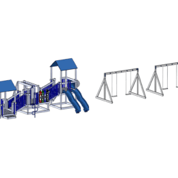 This package includes our Navigator playground, two belt swings, and two toddler swings. The package includes our weed guard, rubber mulch, and play zone border.